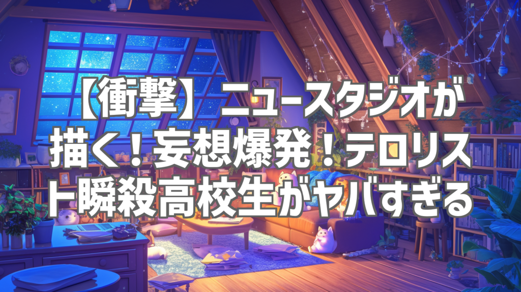 【衝撃】ニュースタジオが描く!妄想爆発!テロリスト瞬殺高校生がヤバすぎる ニュースタジオの最新作「妄想レベル99999テロリスト瞬殺する高校生」が、公開から瞬く間に100万回再生を突破!たった29秒の中に、ありえない設定と予想外の展開が詰め込まれて... -