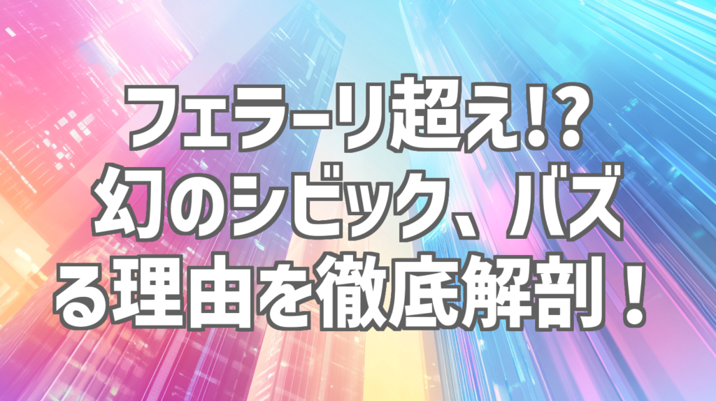フェラーリ超え!? 幻のシビック、バズる理由を徹底解剖! 「フェラーリより希少なシビック」という衝撃的なタイトルで、公開から瞬く間に8万回以上再生されたYouTube動画をご存知でしょうか?自動車好きならずとも、その意外性と希少性に目を奪われること... -