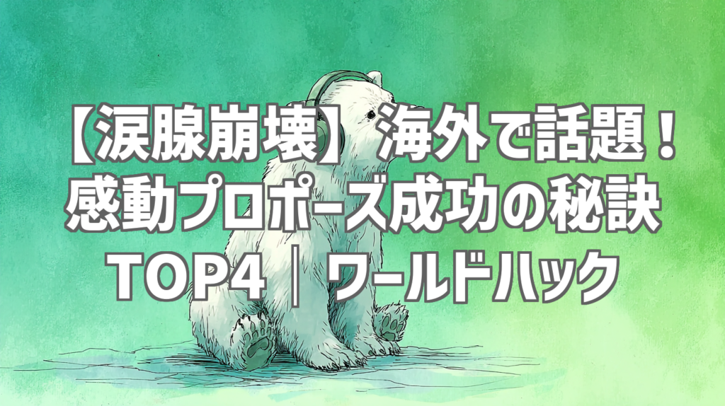 【涙腺崩壊】海外で話題!感動プロポーズ成功の秘訣TOP4|ワールドハック 最近、YouTubeで感動的なプロポーズ動画を見つけて、思わず涙してしまいました。それは「ワールドハック」さんのチャンネルで公開されている「海外でバズった感動のプロポーズTOP4... -