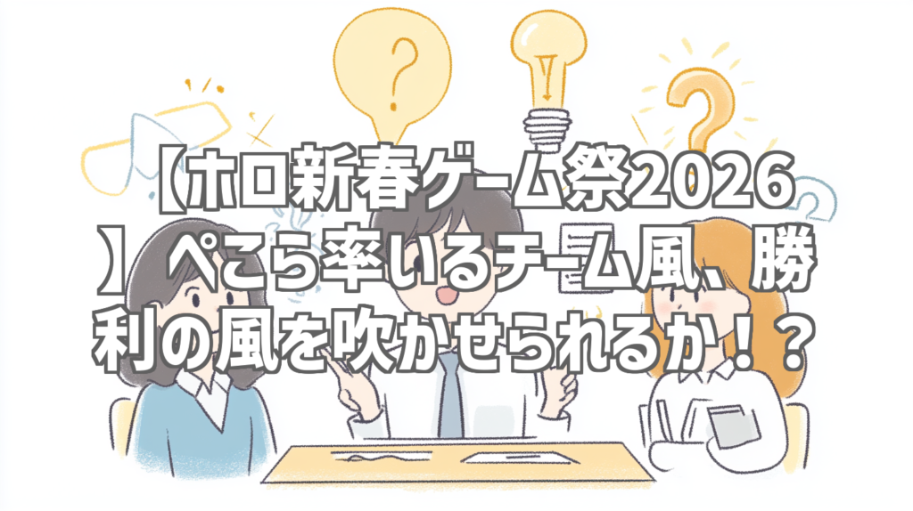 【ホロ新春ゲーム祭2026】ぺこら率いるチーム風、勝利の風を吹かせられるか!? 皆さん、ホロライブ正月の一大イベント「ホロ新春ゲーム祭2026」は見ましたか? 兎田ぺこらさんが率いるチーム風の熱い戦い、マジで見逃せないんですよ! チーム風のメンバー... -
