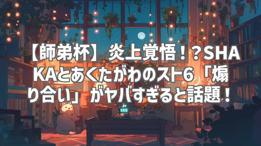 【師弟杯】炎上覚悟!?SHAKAとあくたがわのスト6「煽り合い」がヤバすぎると話題! 師弟杯を前に、SHAKAさんとあくたがわさんのスト6での煽り合いがヒートアップ! その過激なやり取りに「炎上するんじゃないか?」と話題になっている動画を今回は徹底レ... -