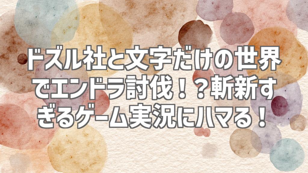 ドズル社と文字だけの世界でエンドラ討伐!?斬新すぎるゲーム実況にハマる! 最近、YouTubeでゲーム実況動画を見るのが日課になっている私。特にドズル社さんの動画は、メンバーの仲の良さが伝わってくる雰囲気と、斬新な企画が大好きでよくチェックして... -
