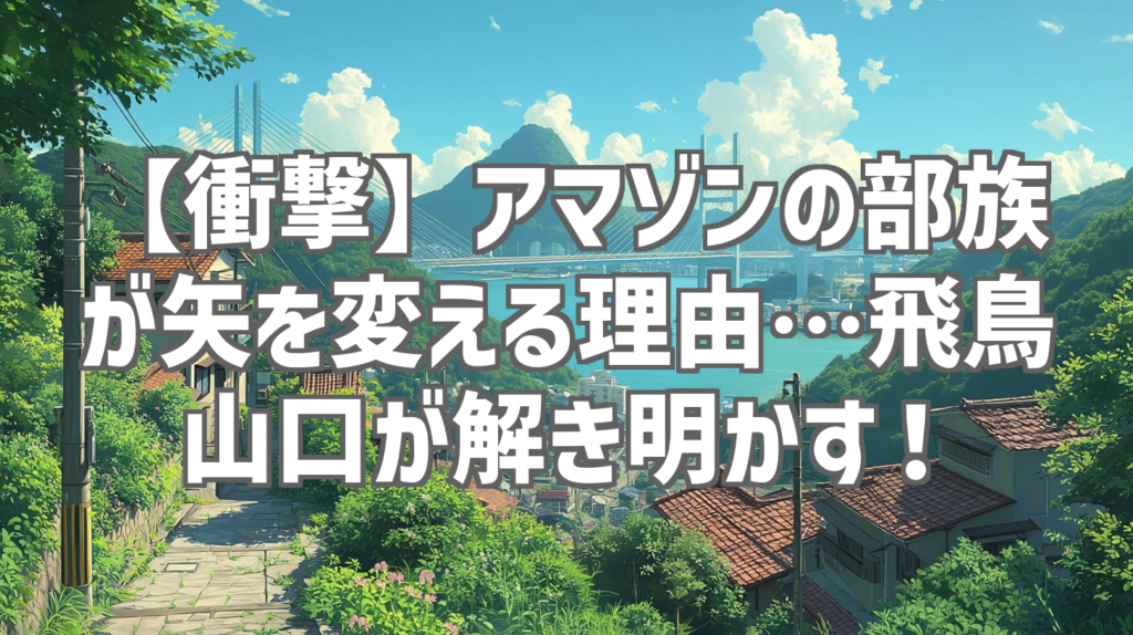 【衝撃】アマゾンの部族が矢を変える理由…飛鳥山口が解き明かす! みなさん、こんにちは!今回は、YouTubeチャンネル「飛鳥山口」で公開されている、わずか49秒の短い動画ながら、100万回以上も再生されている話題の動画「なぜアマゾンの部族は異なる矢を... -