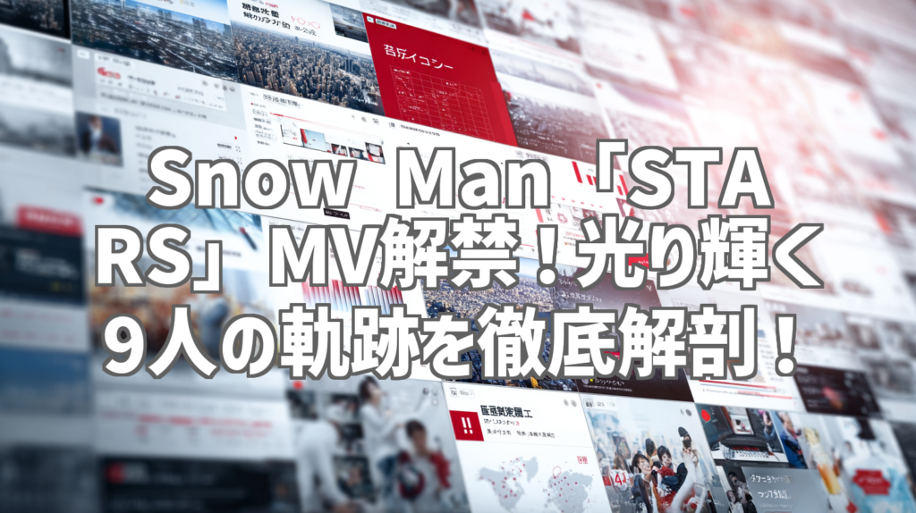 Snow Man「STARS」MV解禁!光り輝く9人の軌跡を徹底解剖! Snow Manの新曲「STARS」のミュージックビデオがついに公開されましたね!今回のMVは、TBS系スポーツ2026のテーマ曲ということもあり、彼らの力強いパフォーマンスと希望に満ちたメッセージが込め... -