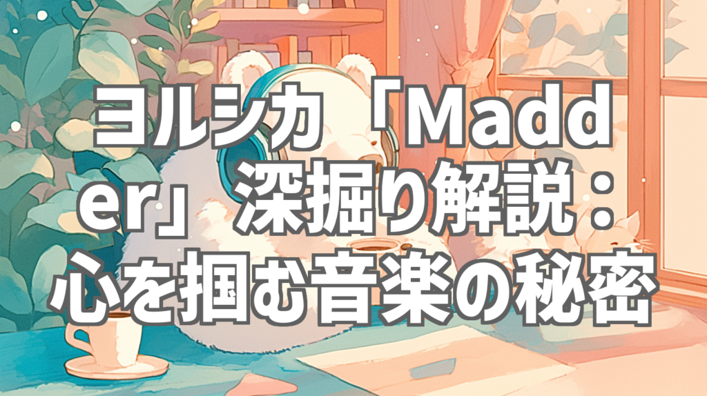ヨルシカ「Madder」深掘り解説:心を掴む音楽の秘密 ヨルシカの新曲「Madder」が公開された瞬間から、その独特な世界観と心を揺さぶるメロディに完全に魅了されてしまいました。透明感のあるSuisさんの歌声と、n-bunaさんの紡ぎ出す歌詞が織りなす物語は、... -
