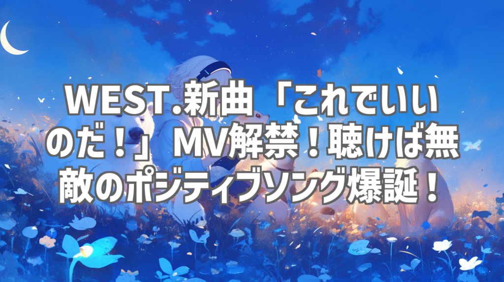 WEST.新曲「これでいいのだ!」MV解禁!聴けば無敵のポジティブソング爆誕! WEST.(ウエスト)の新曲「これでいいのだ!」のミュージックビデオが公開されました!重岡大毅くんが作詞・作曲・振付を手掛けたというこの曲、公開前からSNSで話題沸騰でした... -