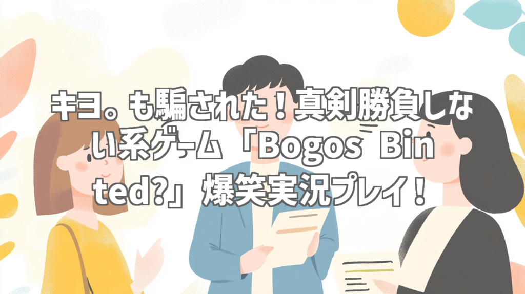 キヨ。も騙された!真剣勝負しない系ゲーム「Bogos Binted?」爆笑実況プレイ! 最近、YouTubeで話題沸騰中のゲーム実況動画、「Bogos Binted?」。あのキヨ。さんが、レトルトさん、牛沢さん、ガッチマンさんと共に、この予測不能なゲームに挑戦し、大爆笑... -