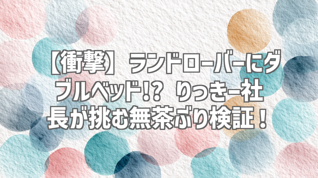 【衝撃】ランドローバーにダブルベッド!? りっきー社長が挑む無茶ぶり検証! 最近、YouTube界隈で話題沸騰中の企画といえば、りっきー社長の「無茶ぶり検証シリーズ」!今回はなんと、高級SUVであるランドローバーにダブルベッドを詰め込むという、常識を... -