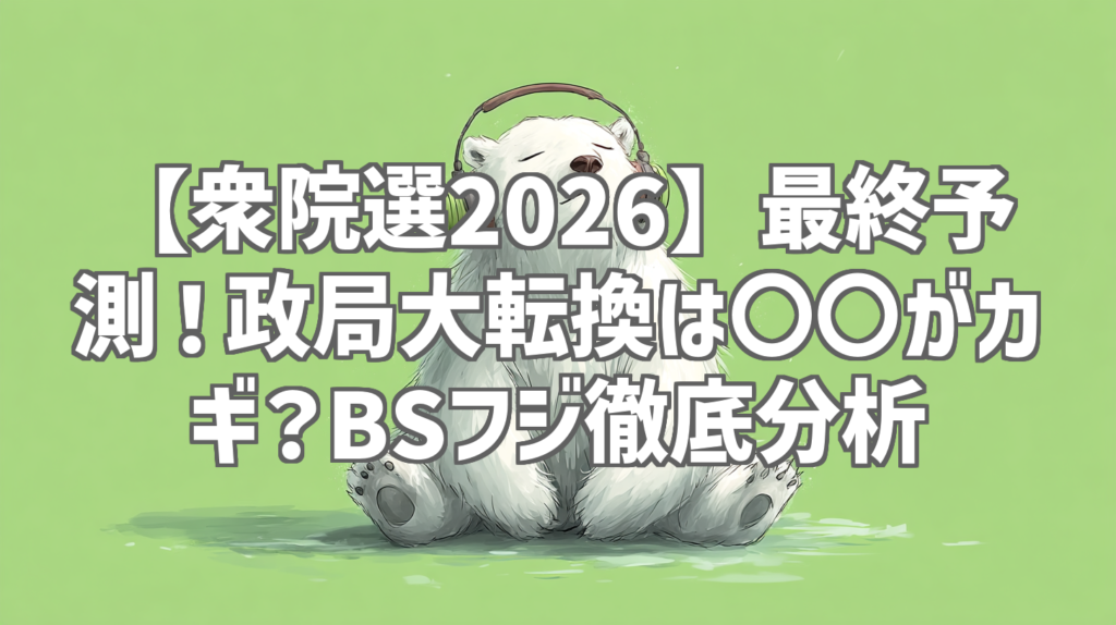 【衆院選2026】最終予測!政局大転換は〇〇がカギ?BSフジ徹底分析 衆院選2026。各メディアが選挙戦の最終情勢を報じる中、私が注目したのはBSフジ プライムニュースが2026年2月6日に公開した「【衆院選 終盤情勢を徹底分析】衆院選2026 “真の最終情勢”と... -