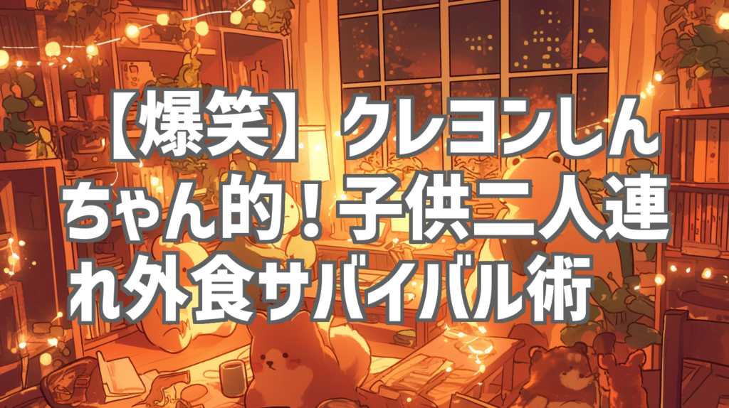【爆笑】クレヨンしんちゃん的!子供二人連れ外食サバイバル術🤣 子供を二人連れての外食…想像するだけで疲弊する親御さんも多いのではないでしょうか?私もその一人です!今回ご紹介するのは、そんな親たちの悲哀を、あの国民的アニメ「クレヨンし... -