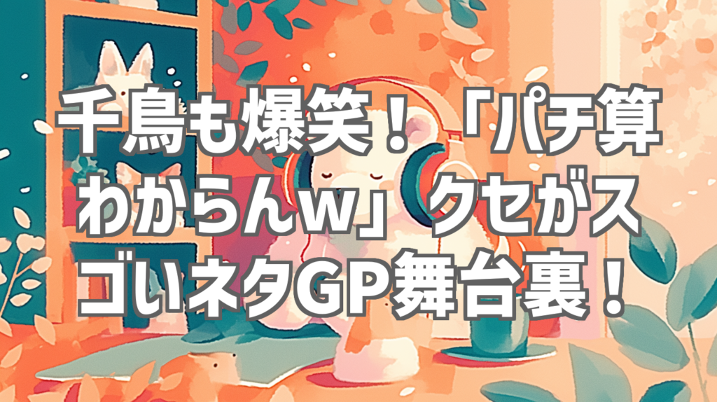 千鳥も爆笑!「パチ算わからんw」クセがスゴいネタGP舞台裏! 千鳥がMCを務める人気番組「千鳥のクセがスゴいネタGP」。その舞台裏を捉えた1分間のショート動画が、YouTubeで話題沸騰中です!特に「パチ算わからんw」というフレーズが強烈なインパクトを残... -