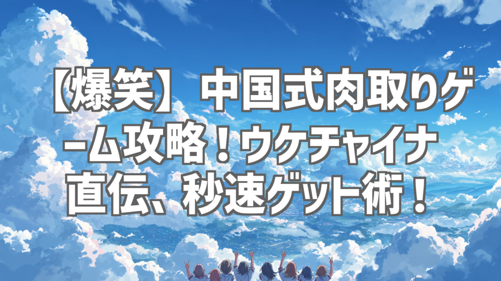 【爆笑】中国式肉取りゲーム攻略!ウケチャイナ直伝、秒速ゲット術! いやー、マジで笑った!今回はYouTubeで見つけた爆笑必至の動画をご紹介します。その名も「中国の超面白い肉取りゲーム」!「ウケチャイナ」というチャンネルがアップしているんですが... -