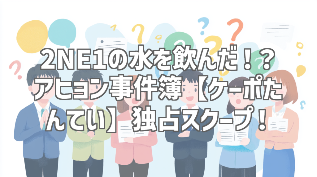 2NE1の水を飲んだ!?アヒョン事件簿【ケーポたんてい】独占スクープ! 皆さん、ケーポ界隈をざわつかせているこのニュース、もうチェックしましたか? あの人気急上昇中のガールズグループBABYMONSTERのメンバー、アヒョンが、なんと伝説のグループ2NE1の... -