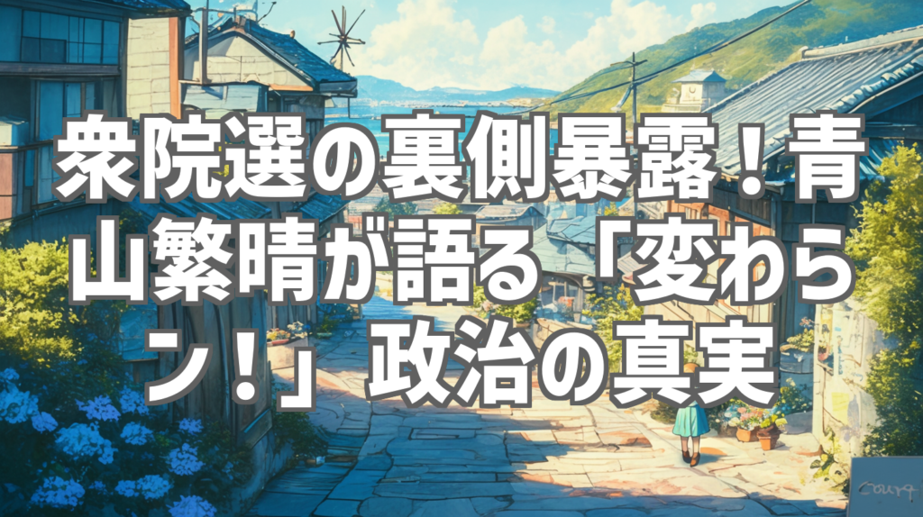 衆院選の裏側暴露!青山繁晴が語る「変わらン!」政治の真実 先日、青山繁晴議員の「【ぼくらの国会・第1122回】ニュースの尻尾「衆院選 選挙を変えずして政治は変わらン!」」という動画を拝見しました。今回の動画は、2026年の衆院選で青山議員自身が体... -