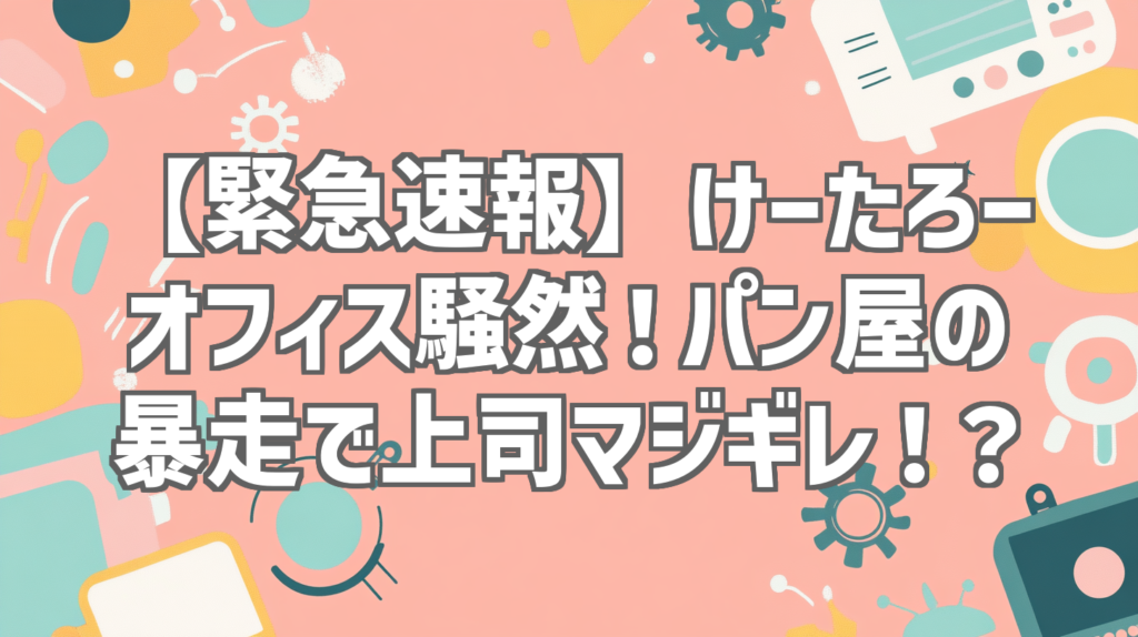【緊急速報】けーたろーオフィス騒然!パン屋の暴走で上司マジギレ!? いやー、皆さん、見ました?けーさんとたろーの最新動画!もうね、タイトルからして只事じゃない雰囲気プンプンだったんですけど、想像を遥かに超える展開で、マジで声出して笑っちゃ... -