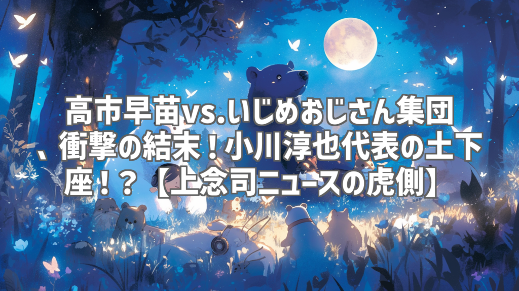 高市早苗vs.いじめおじさん集団、衝撃の結末!小川淳也代表の土下座!?【上念司ニュースの虎側】 最近、YouTubeで政治系の動画をチェックするのが日課になっているんだけど、今回見つけた「上念司チャンネル ニュースの虎側」の動画がマジで面白かった!... -