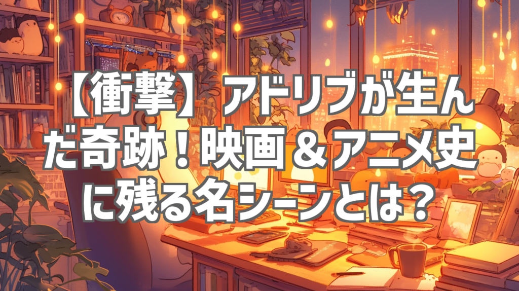 【衝撃】アドリブが生んだ奇跡!映画&アニメ史に残る名シーンとは? 映画やアニメを観ていると、心を揺さぶられるような、忘れられないシーンに出会うことがありますよね。脚本にはない、予定外の、まさに「アドリブ」から生まれた名シーンがあるって知っ... -
