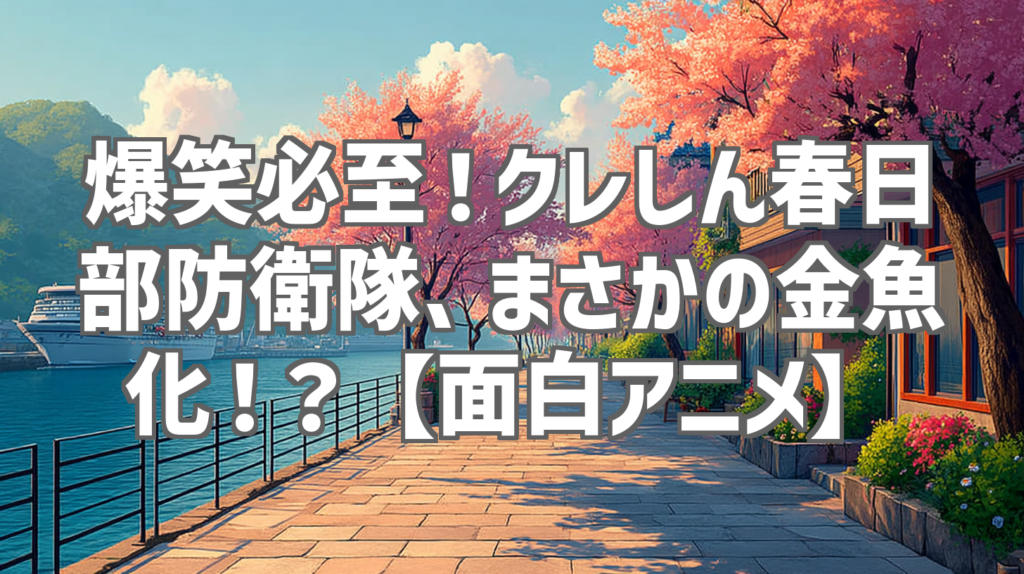 爆笑必至!クレしん春日部防衛隊、まさかの金魚化!?【面白アニメ】 いやー、YouTubeを開いたら、サムネイルのインパクトにやられて速攻クリックしちゃいました!クレヨンしんちゃんの春日部防衛隊が、まさかの金魚になっちゃうっていうんですから、一体...