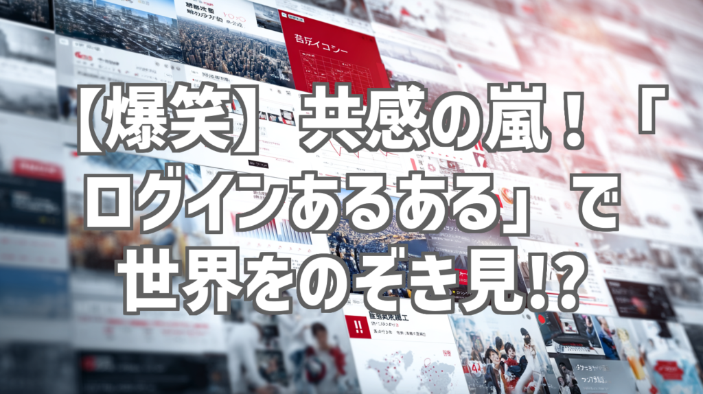 【爆笑】共感の嵐!「ログインあるある」で世界をのぞき見!? 「あるある」ネタって、なぜこんなに面白いんでしょうね!今回ご紹介するのは、YouTubeチャンネル「世界をのぞき見!」さんが公開した、たった49秒のショート動画「ログインあるある。」です。私... -