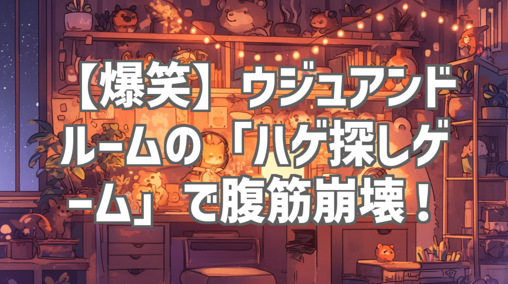 【爆笑】ウジュアンドルームの「ハゲ探しゲーム」で腹筋崩壊! 最近、YouTubeで話題沸騰中の「ウジュアンドルーム」さんの動画をご存知ですか? 特に、今回ご紹介する「ハゲ探しゲーム」は、たった43秒という短い時間の中に、笑いがギュッと凝縮された爆笑... -