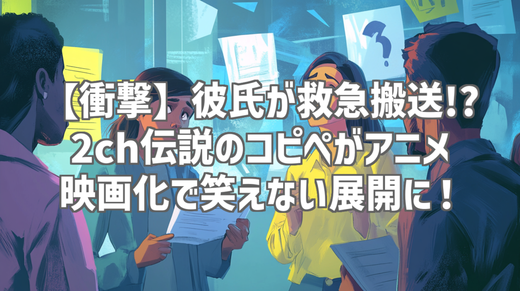 【衝撃】彼氏が救急搬送!? 2ch伝説のコピペがアニメ映画化で笑えない展開に! 2chの伝説的コピペがまさかのアニメ映画化!今回は、YouTubeチャンネル「【笑えるコピペ連発】2chショートまとめ」で公開された「救急医療の職場に彼氏が運ばれてきた!?」と... -