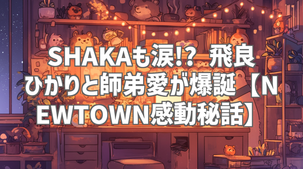 SHAKAも涙!? 飛良ひかりと師弟愛が爆誕【NEWTOWN感動秘話】 SHAKAさんのYouTubeチャンネル「SHAKAch」で公開された「少しずつ自分に似てきた飛良ひかりとまんがな師弟として絆を深め合うSHAKA【#NEWTOWN】」という動画、皆さん見ましたか? 約1時間3分とい... -