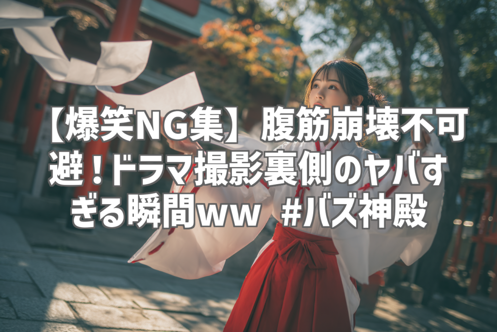 【爆笑NG集】腹筋崩壊不可避!ドラマ撮影裏側のヤバすぎる瞬間ww #バズ神殿 最近、YouTubeで話題になっている「バズ神殿」さんの動画をご存知ですか? 今回は、彼らがアップロードした爆笑必至のNG集動画「NGシーンで腹筋崩壊する瞬間ww #おもしろ #面白い... -