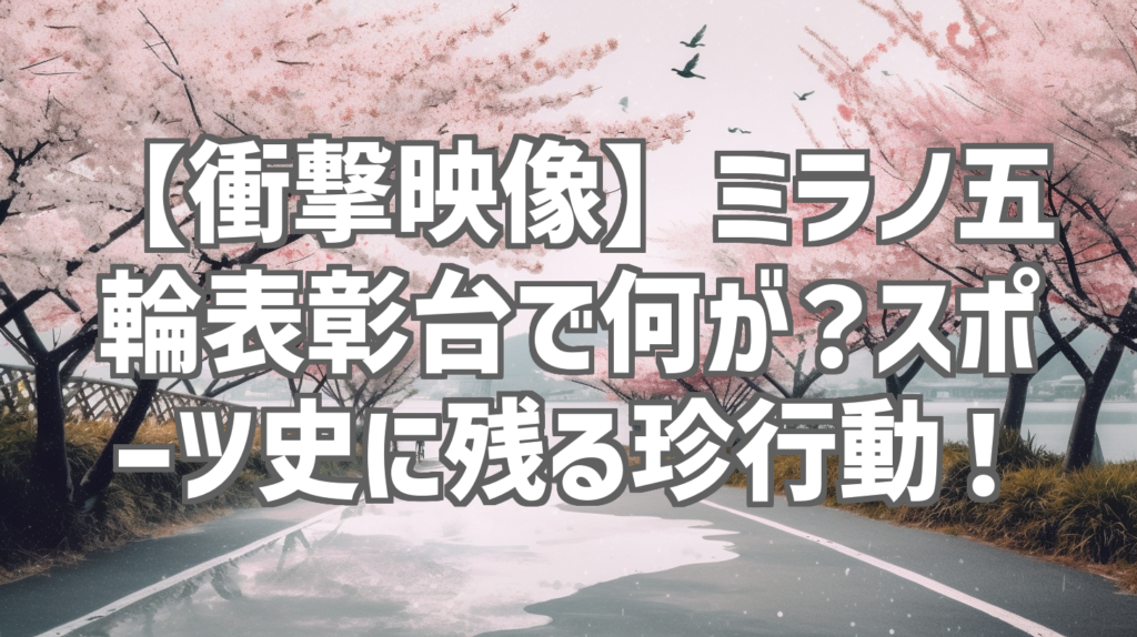 【衝撃映像】ミラノ五輪表彰台で何が?スポーツ史に残る珍行動! スポーツの祭典、オリンピック。そこで繰り広げられる熱戦や感動的なシーンは、私たちの記憶に深く刻まれますよね。しかし、時として予想外のハプニングや珍プレーが起こり、それは時に笑い... -