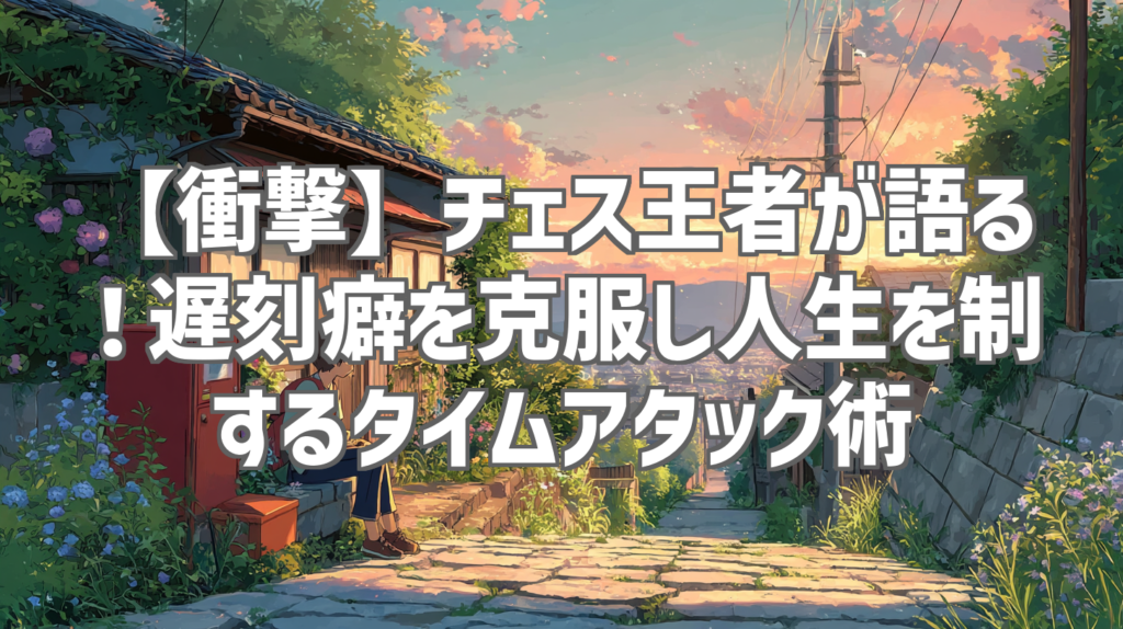 【衝撃】チェス王者が語る!遅刻癖を克服し人生を制するタイムアタック術 「また遅刻だ…」 毎朝、目覚まし時計の音にうんざりしながら飛び起き、慌ただしく家を飛び出す。そんな日々を送っているあなたに、朗報です。今回ご紹介するのは、チェス王者であり... -