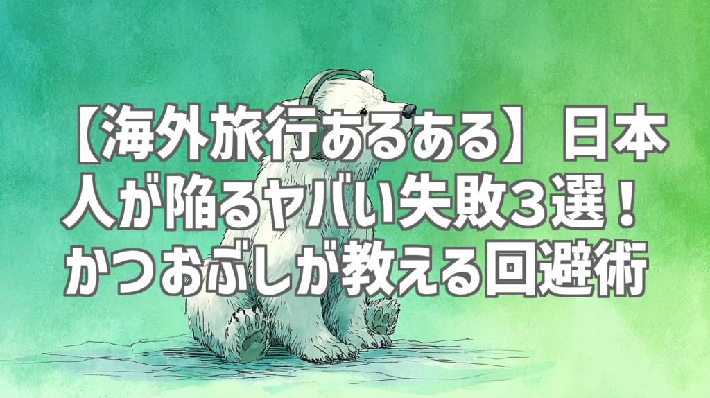 【海外旅行あるある】日本人が陥るヤバい失敗3選!かつおぶしが教える回避術 海外旅行って、ワクワクする反面、ちょっとした油断で思わぬトラブルに巻き込まれることもありますよね。特に日本人旅行者は、文化や習慣の違いから、陥りやすい失敗があるんで... -
