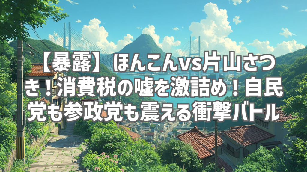 【暴露】ほんこんvs片山さつき!消費税の嘘を激詰め!自民党も参政党も震える衝撃バトル 皆さん、衝撃的な動画を見つけてしまいました!お笑い芸人のほんこんさんが、なんと自民党の片山さつき議員に消費税についてガチで切り込むという、普段のニュースで... -