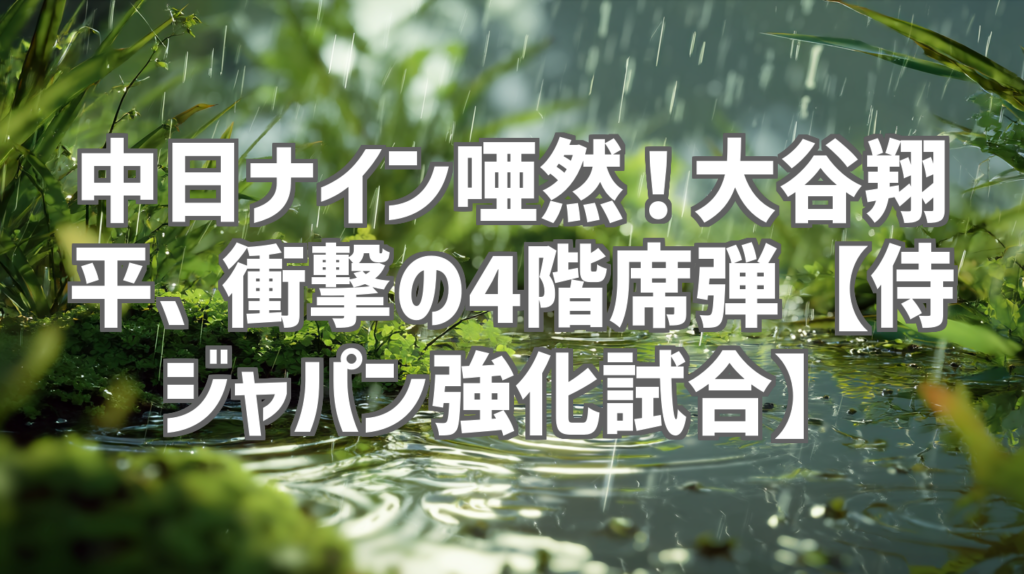中日ナイン唖然!大谷翔平、衝撃の4階席弾【侍ジャパン強化試合】 侍ジャパン強化試合、日本中が注目する中、大谷翔平選手が放った衝撃の4階席ホームラン。その瞬間を捉えた【公式】TBS スポーツのYouTube動画は、公開から瞬く間に69万回以上再生され、今... -