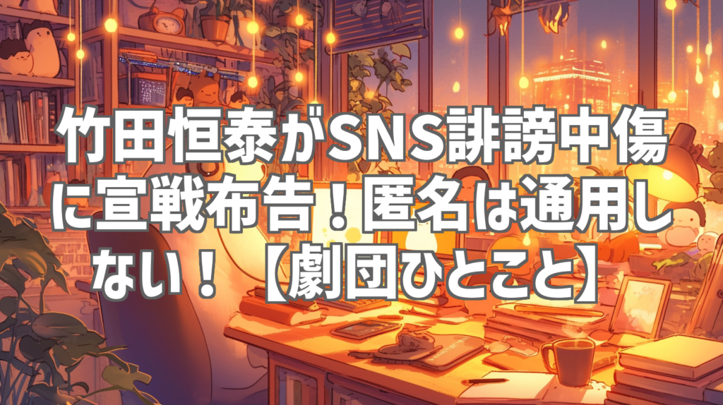 竹田恒泰がSNS誹謗中傷に宣戦布告!匿名は通用しない!【劇団ひとこと】