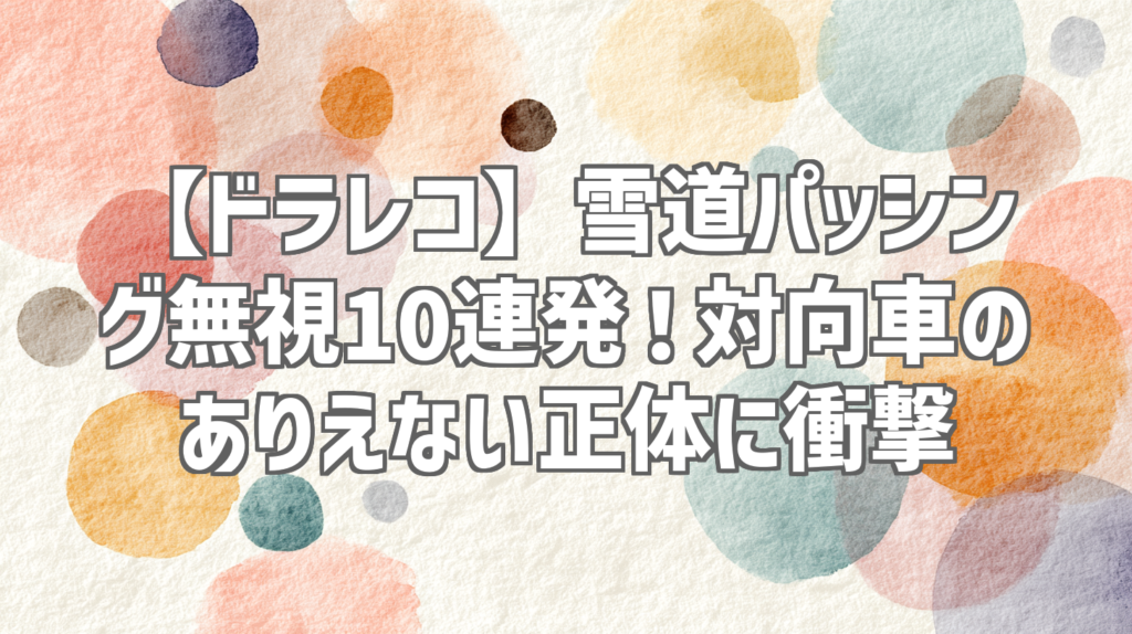 【ドラレコ】雪道パッシング無視10連発!対向車のありえない正体に衝撃 夜の雪道、ただでさえ視界が悪く運転には細心の注意が必要な状況。そんな中、信じられないような光景に遭遇したドラレコ映像が話題を呼んでいます。対向車がまさかの無灯火!しかも、... -