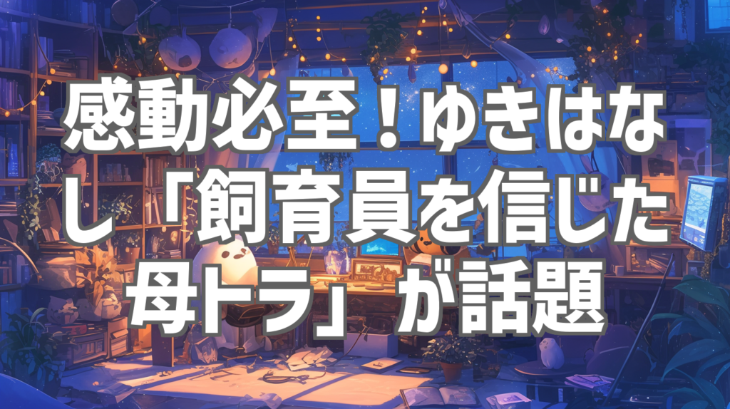 感動必至!ゆきはなし「飼育員を信じた母トラ」が話題 先日、YouTubeで偶然見つけた「ゆきはなし」さんの「飼育員を信じた母トラ」という動画が、本当に心を揺さぶられました。たった42秒の短い動画なのですが、そこに込められた母性愛と飼育員さんへの信... -