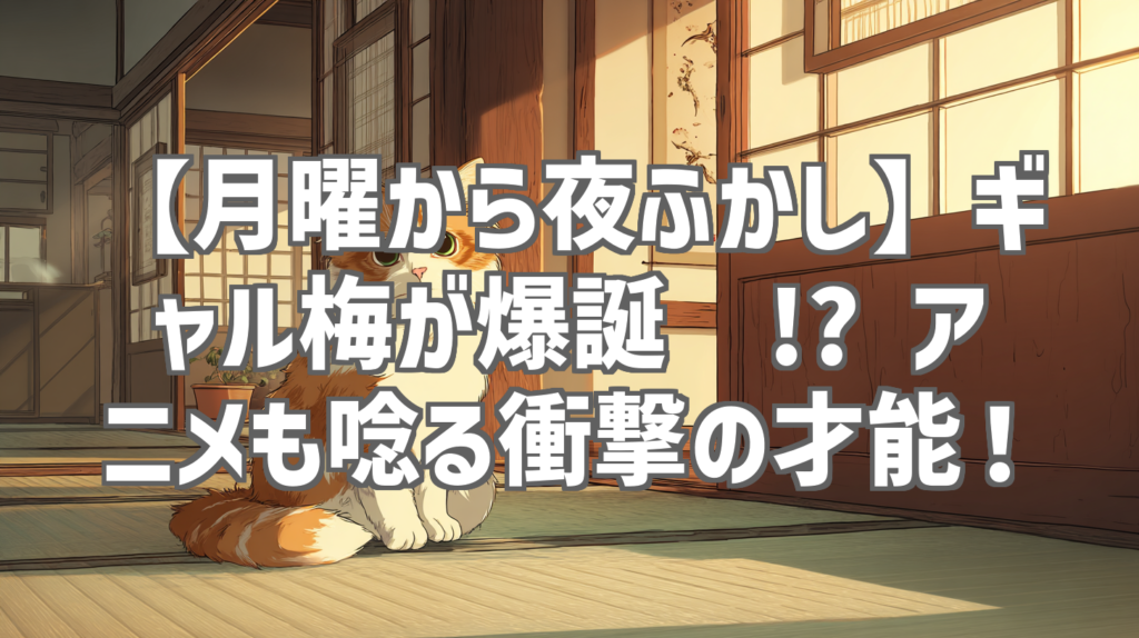 【月曜から夜ふかし】ギャル梅が爆誕🤣!? アニメも唸る衝撃の才能! 「月曜から夜ふかし」は、毎回予想外の才能や個性的な人々を発掘してくれる、大好きな番組の一つです。今回、私が釘付けになったのは、なんと「ギャルが作った梅」!一体どんな梅... -