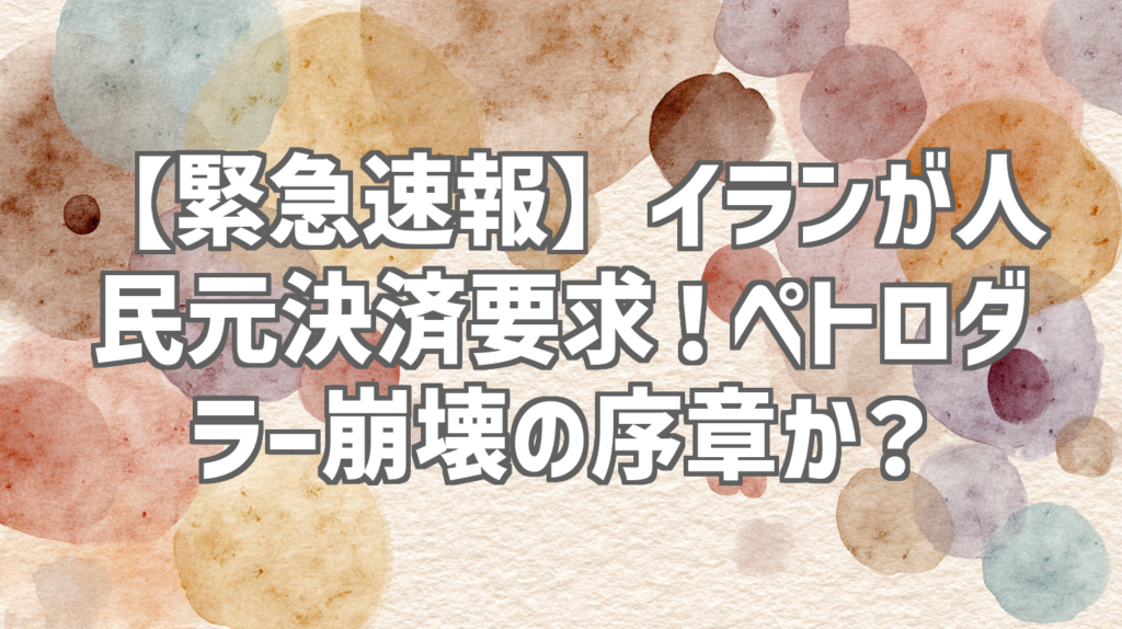 【緊急速報】イランが人民元決済要求!ペトロダラー崩壊の序章か? 原油価格の高騰が続く中、世界経済の動向に大きな影響を与えるニュースが飛び込んできました。イランが石油取引において人民元決済を要求する可能性が出てきたというのです。もしこれが現... -