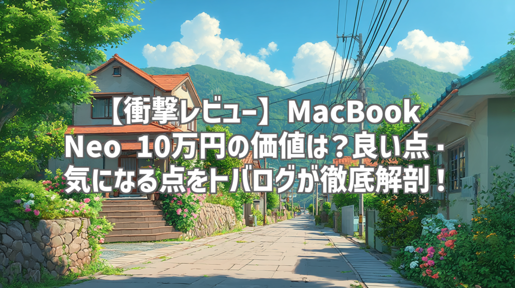 【衝撃レビュー】MacBook Neo 10万円の価値は?良い点・気になる点をトバログが徹底解剖! 最近、ガジェット好きの間で話題沸騰中の「MacBook Neo」。私も発表時からその価格とスペックに釘付けでした。なんと10万円でMacBookが手に入る時代が来るとは! ... -