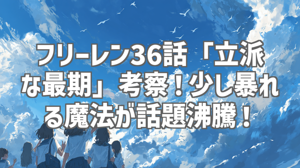 フリーレン36話「立派な最期」考察!少し暴れる魔法が話題沸騰! ついにフリーレン36話「立派な最期」が放送されましたね!今回のエピソード、特に終盤の魔法戦は、まさに息をのむ展開でした。メトーデとゾリーダの激突、そしてフリーレンのあのセリフ…「... -