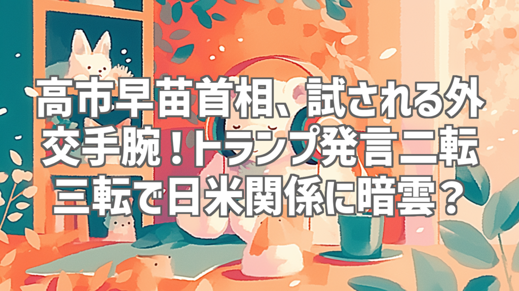 高市早苗首相、試される外交手腕!トランプ発言二転三転で日米関係に暗雲? 日米関係は、常に日本の外交政策における最重要課題の一つです。しかし、近年の国際情勢の変動、特にトランプ前大統領の登場以降、その安定性が揺らいでいることは否めません。今... -