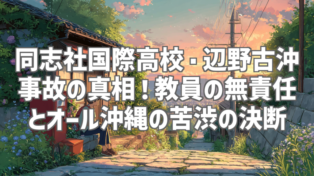 同志社国際高校・辺野古沖事故の真相!教員の無責任とオール沖縄の苦渋の決断 先日、同志社国際高校の生徒たちが辺野古沖で事故に遭ったというニュースを知り、私も大変心を痛めました。今回の事故は、単なる不慮の事故として片付けられるものではなく、背... -