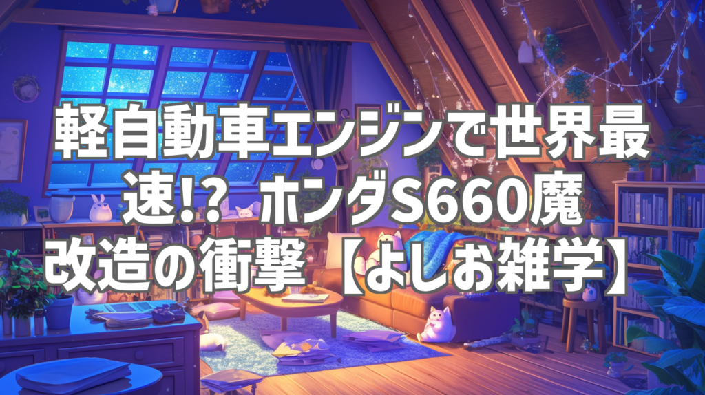 軽自動車エンジンで世界最速!? ホンダS660魔改造の衝撃【よしお雑学】 軽自動車のエンジンで、世界最速を目指すなんて、考えたことありますか? 今回は、YouTubeチャンネル「よしお雑学」で紹介されている、ホンダS660の驚くべき魔改造に関する動画をご紹...