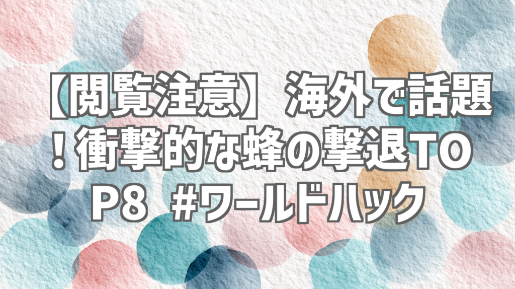 【閲覧注意】海外で話題!衝撃的な蜂の撃退TOP8 #ワールドハック いやー、マジで衝撃的でした。YouTubeで話題になっている「ワールドハック」さんの「海外でバズった蜂を撃退する瞬間TOP8」という動画、見ました? タイトルの通り、海外の人が蜂を撃退する... -