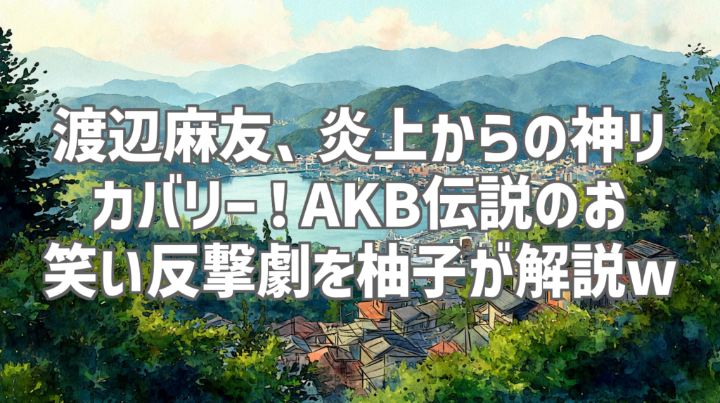 渡辺麻友、炎上からの神リカバリー!AKB伝説のお笑い反撃劇を柚子が解説w AKB48の全盛期を支えた人気メンバー、渡辺麻友さん。誰もが認めるアイドルとしての完璧さと、その裏に隠されたお茶目な一面が垣間見える瞬間は、ファンならずとも心を掴まれますよ... -