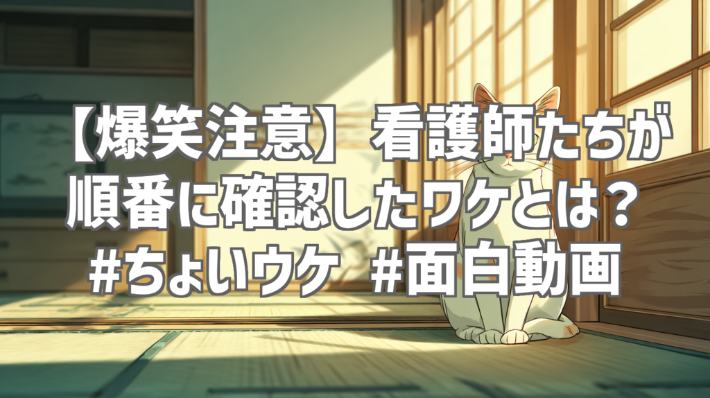 【爆笑注意】看護師たちが順番に確認したワケとは? #ちょいウケ #面白動画 YouTubeで見つけた「ちょいウケ」さんの動画「看護師たちが順番に確認した理由 #おもしろ #面白動画 #funny」が、マジでツボに入ってしまった!たった1分ほどの短い動画なんだけ... -