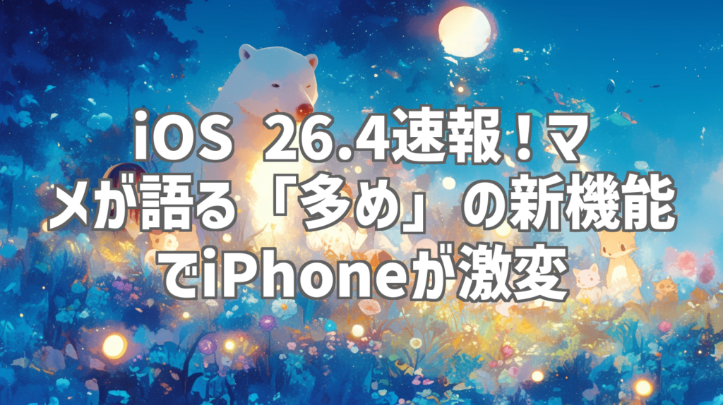iOS 26.4速報!マメが語る「多め」の新機能でiPhoneが激変 ついに来た!iOS 26.4のアップデート情報! 今回は、ガジェット系YouTuberとしてお馴染みの「マメ」さんの動画を参考に、iOS 26.4の新機能を深掘りしていきます。動画タイトルからもわかるように...
