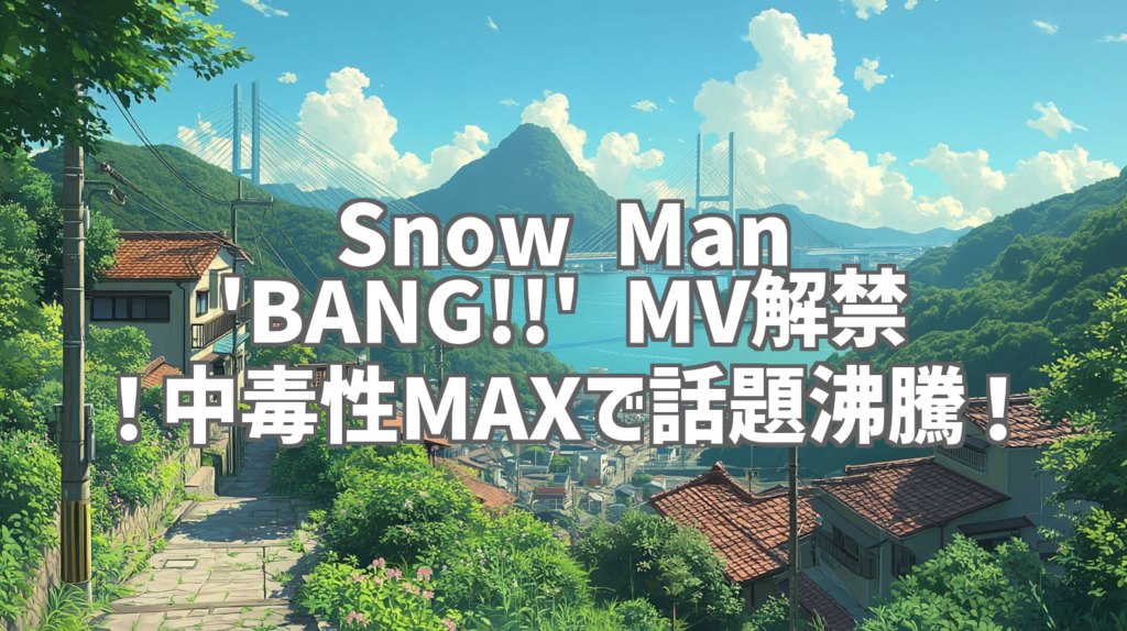 Snow Man 'BANG!!' MV解禁!中毒性MAXで話題沸騰! Snow Manの新曲'BANG!!'のMusic Videoがついに解禁!公開からわずか数時間でミリオン再生を突破し、SNSでは「中毒性がヤバい!」「無限リピ確定!」といったコメントが飛び交っています。目黒蓮さん主演... -