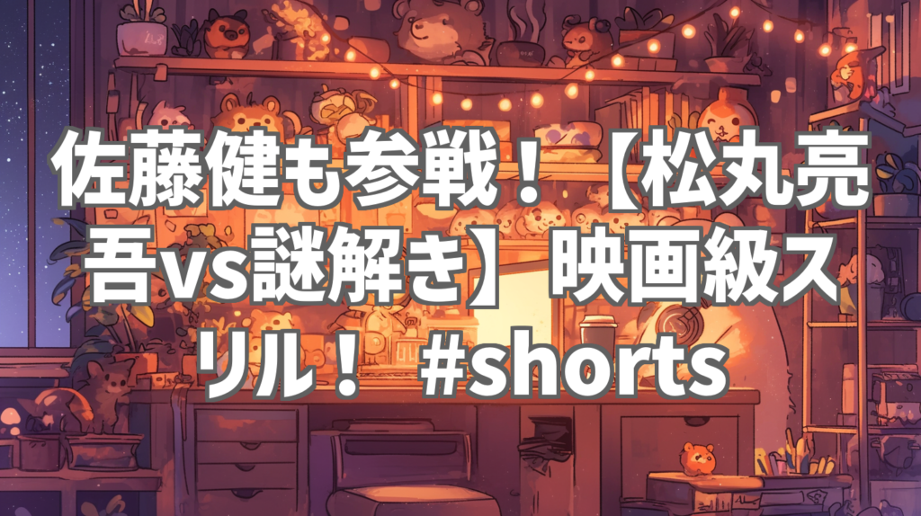 佐藤健も参戦!【松丸亮吾vs謎解き】映画級スリル! #shorts リドラの謎解きチャンネルが公開したショート動画「【松丸亮吾vs佐藤健】的を撃ち抜いて解答権ゲット!【ナゾトキ】#shorts」が、公開から数日で驚異的な再生回数を記録しています!あの佐藤健... -