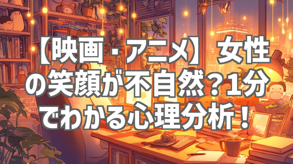 【映画・アニメ】女性の笑顔が不自然?1分でわかる心理分析! 映画やアニメを見ていると、ふと「このキャラクターの笑顔、なんか不自然だな…」と感じること、ありませんか?特に女性キャラクターの笑顔には、作り物めいた違和感を覚えることがあります。実... -