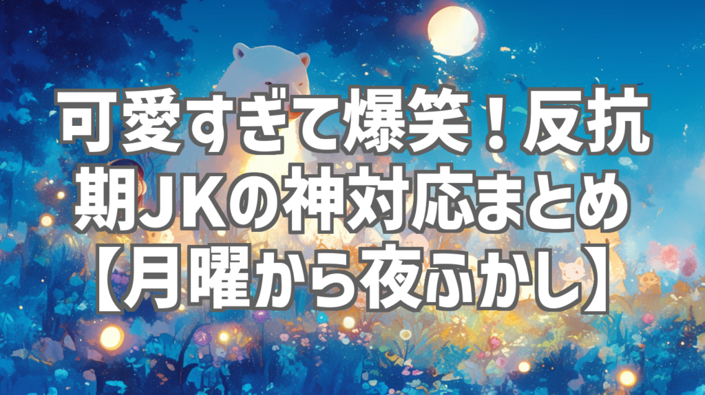 可愛すぎて爆笑!反抗期JKの神対応まとめ【月曜から夜ふかし】 「月曜から夜ふかし」って、たまに本当に予想外の面白い瞬間が生まれるんですよね。今回紹介するのは、そんな夜ふかしが生んだ奇跡的な一コマ。「めっちゃ可愛い反抗期で草」というタイトルで... -